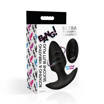 Rotating & Vibrating Silicone Butt Plug w/ Remote - Black