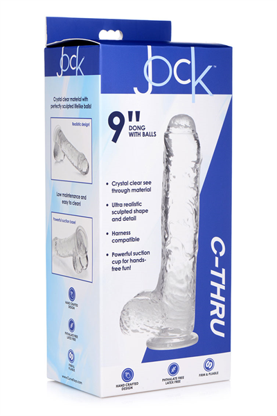 Jock C-Thru 9" Clear dildo with balls - Clear