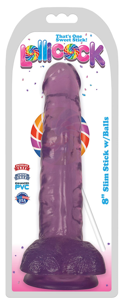 Lollicock 8" Slim Stick w/Balls-Grape Ice