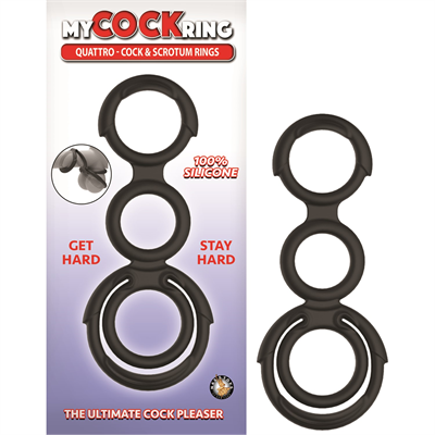 My Cockring Quattro Cock & Scrotum Rings - Black